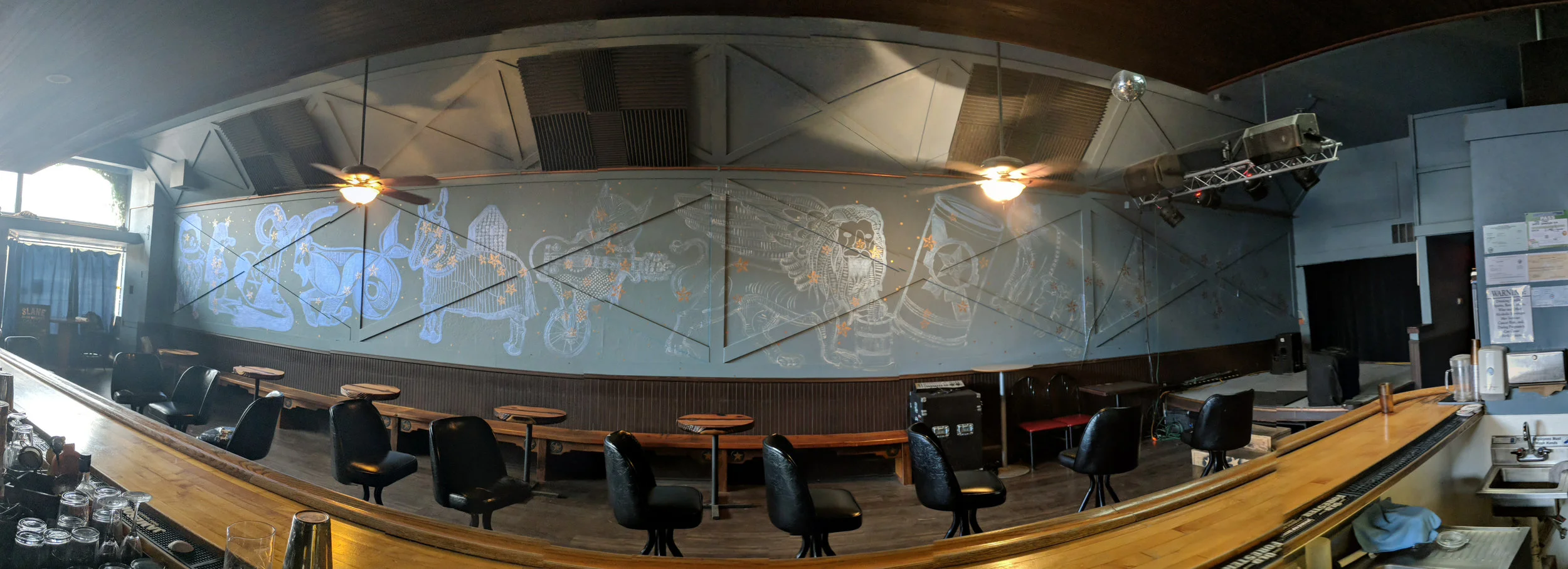 …was a piece inspired by the people of sebastopol, ca. a local bar i drank at and admired. the owners asked of me to paint a starry sky in which resembled mythological constellations. so i decide to create some of my own.